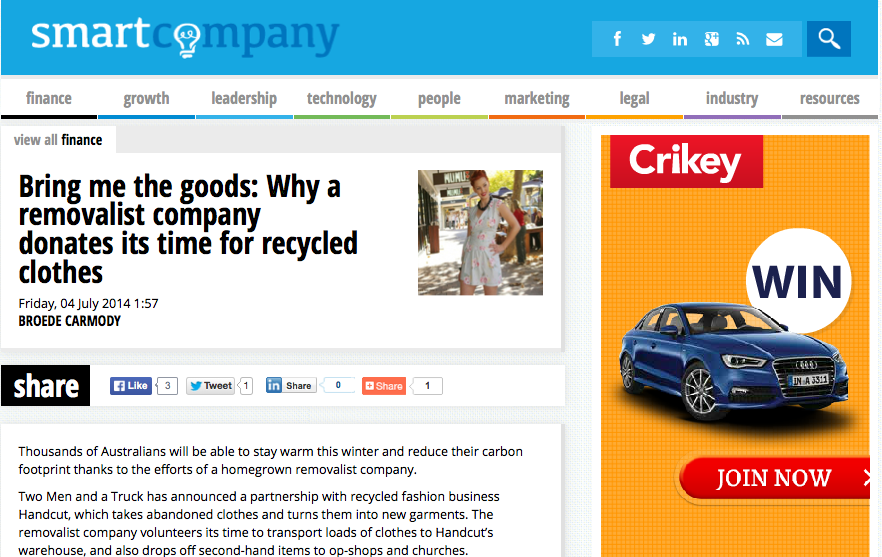 SmartCompany: Bring me the goods – Why a removalist company donates its time for recycled clothes