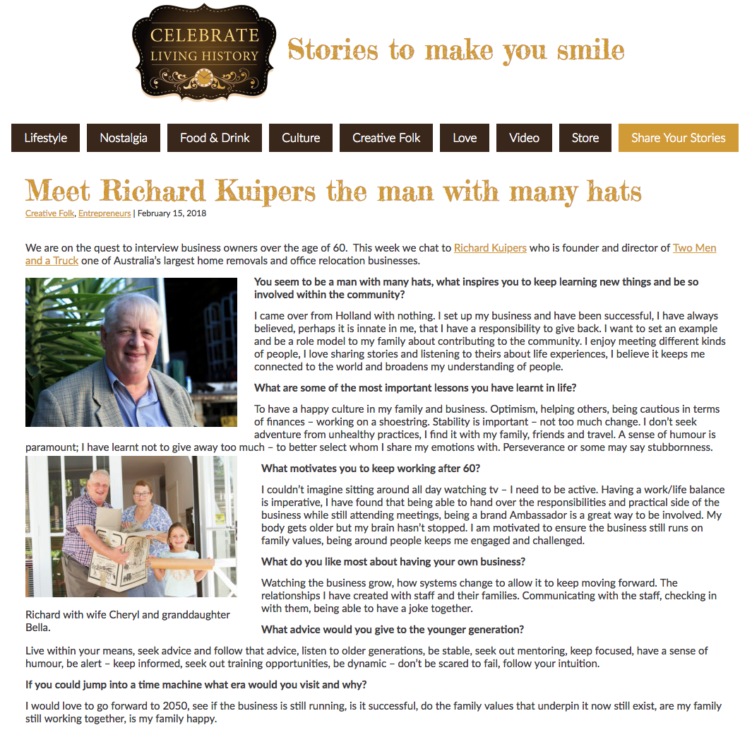 Richard Kuipers is the founder and brand ambassador of Australia-wide removals company Two Men And A Truck.